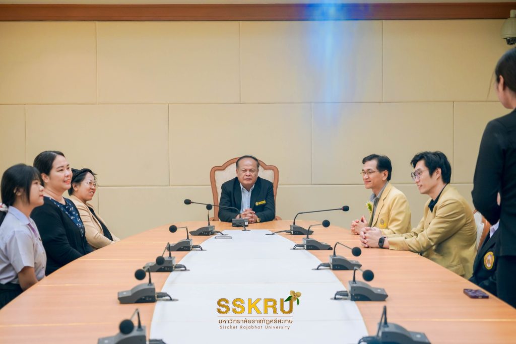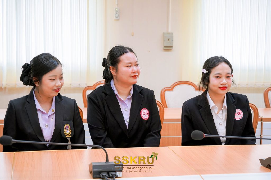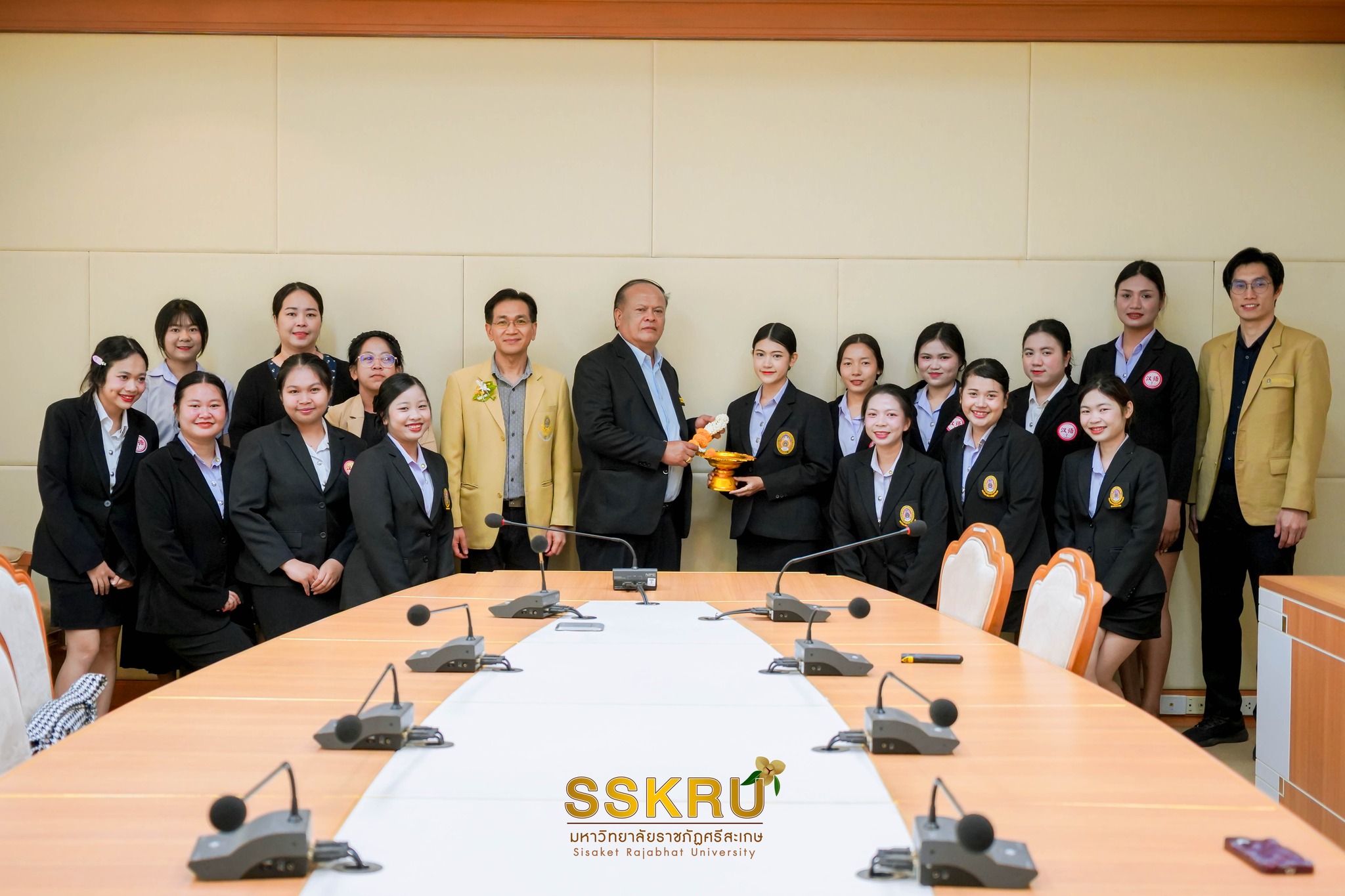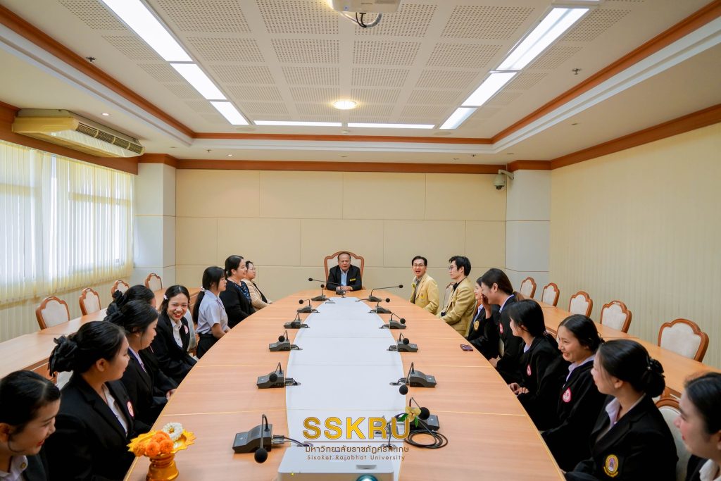 วันพฤหัสบดีที่ 26 กุมภาพันธ์ 2569 เวลา 9.00 น. รองศาสตราจารย์ ดร.ประกาศิต อานุภาพแสนยากร อธิการบดีมหาวิทยาลัยราชภัฏศรีสะเกษ ให้เกียรติมอบโอวาทแก่นักศึกษาสาขาวิชาภาษาจีน ชั้นปีที่ 3 คณะมนุษยศาสตร์และสังคมศาสตร์ จำนวน 12 คน ที่จะเดินทางเข้าร่วมโครงการแลกเปลี่ยนนักศึกษายังสาธารณรัฐประชาชนจีน ประจำภาคการศึกษาที่ 1/2569 เป็นระยะเวลา 1 ภาคการศึกษา ระหว่างวันที่ 9 มีนาคม – 5 กรกฎาคม 2569